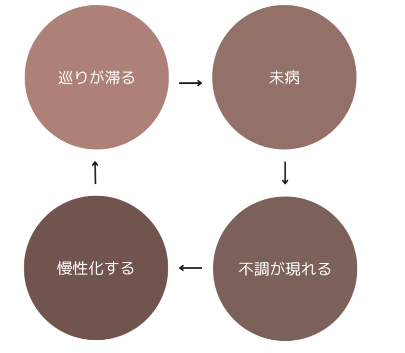 これらの慢性的な不調やその他のあらゆる不調は、血流や気の巡りが滞っていることが大きな原因の一つと考えられています。