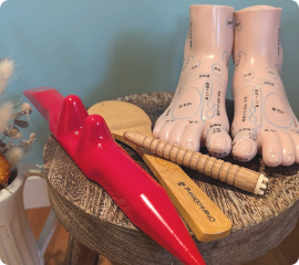 中国式反射区療法と官足法(台湾式血液循環法)』の要素を併せ持つ「痛気持ちいい」足もみ療法を提供しています。